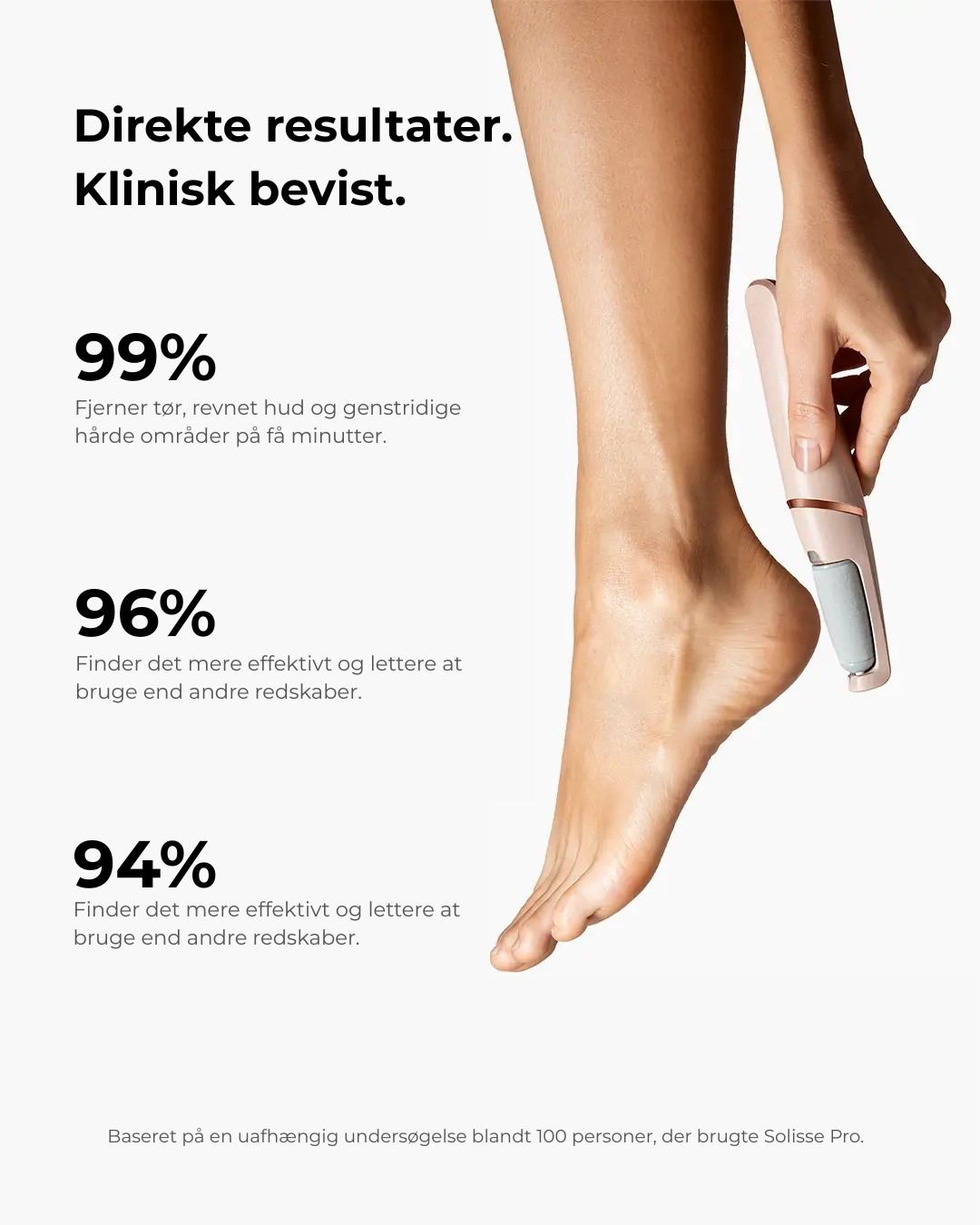 Et uafhængigt panel testede Solisse Pro hos 100 deltagere med tørre, sprukne hæle. Sådan lød deres rapport efter et par ugers brug:
