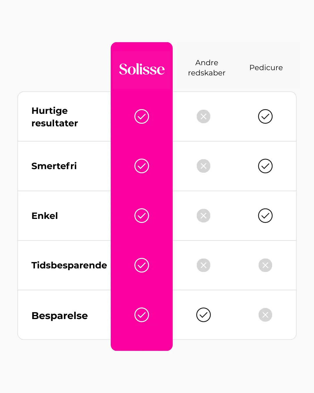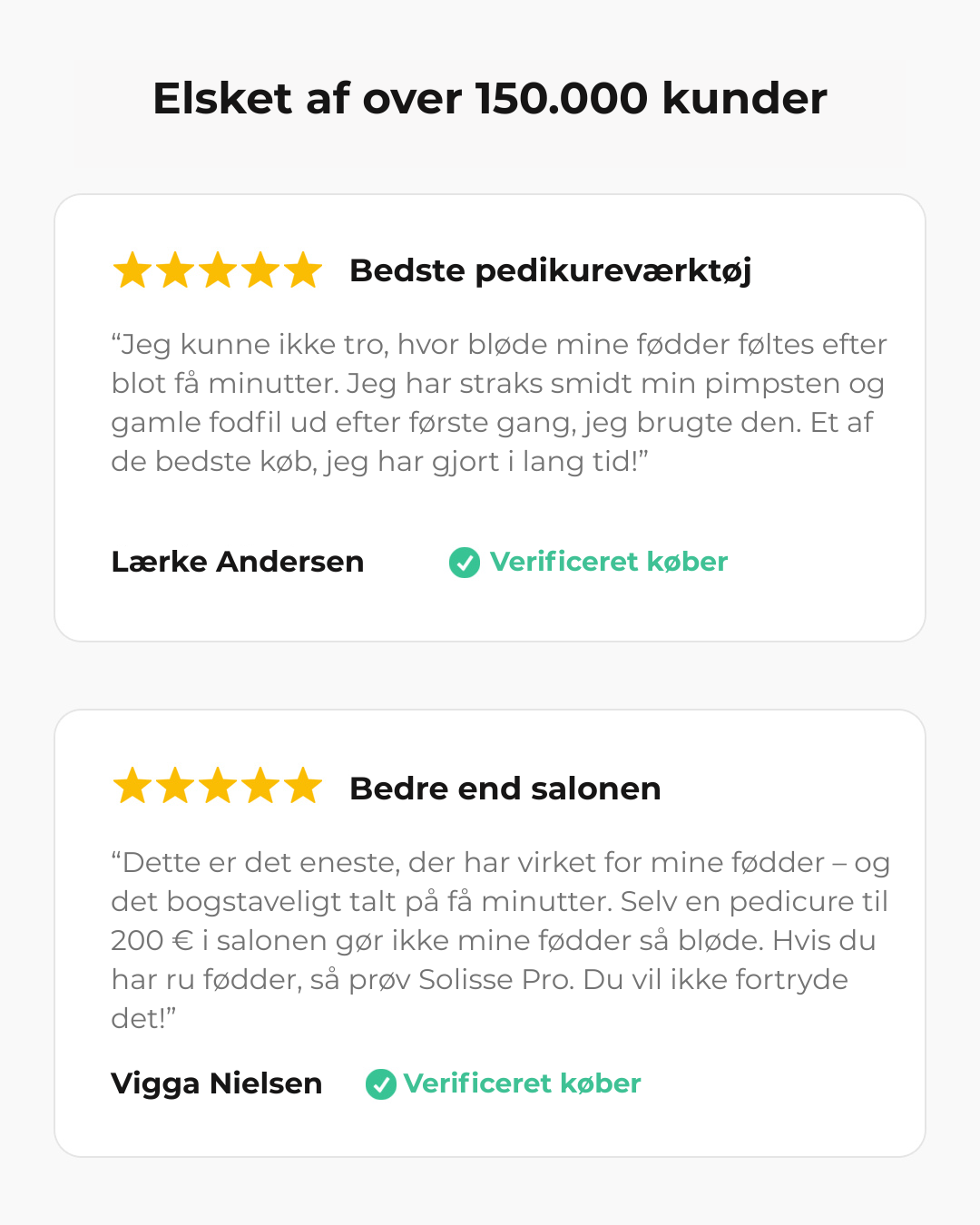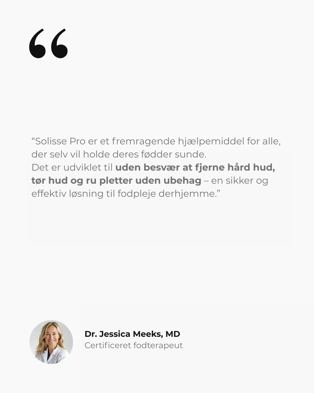 “Normalt betaler jeg hver måned for en pedicure, men Solisse Pro giver mig samme resultat på få minutter. Mine hæle føles glatte i uger efter.”